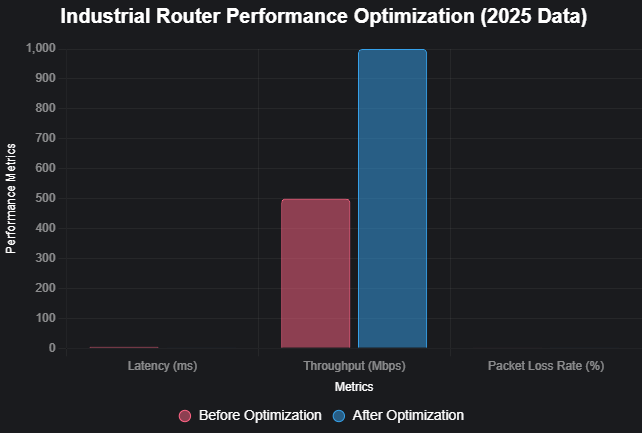 To ensure stability under high loads, industrial router software emphasizes performance benchmark optimization. Typical 2025 indicators include real-time network monitoring, intelligent routing selection, and load balancing, achieving <1% packet loss rate and dynamic resource allocation. For example, AI algorithms predict base station demands, optimizing edge node sharing and improving CPU utilization by 20%.